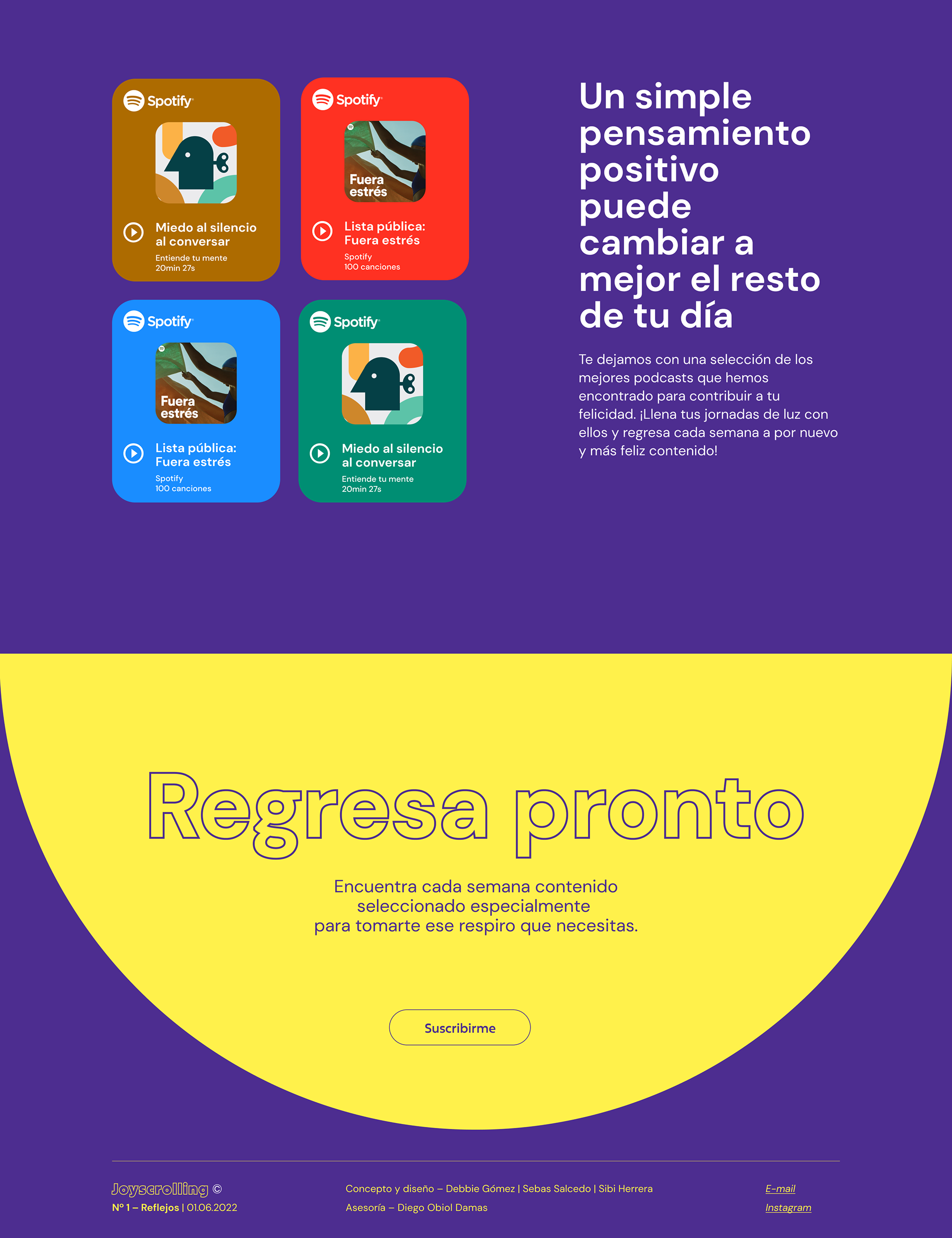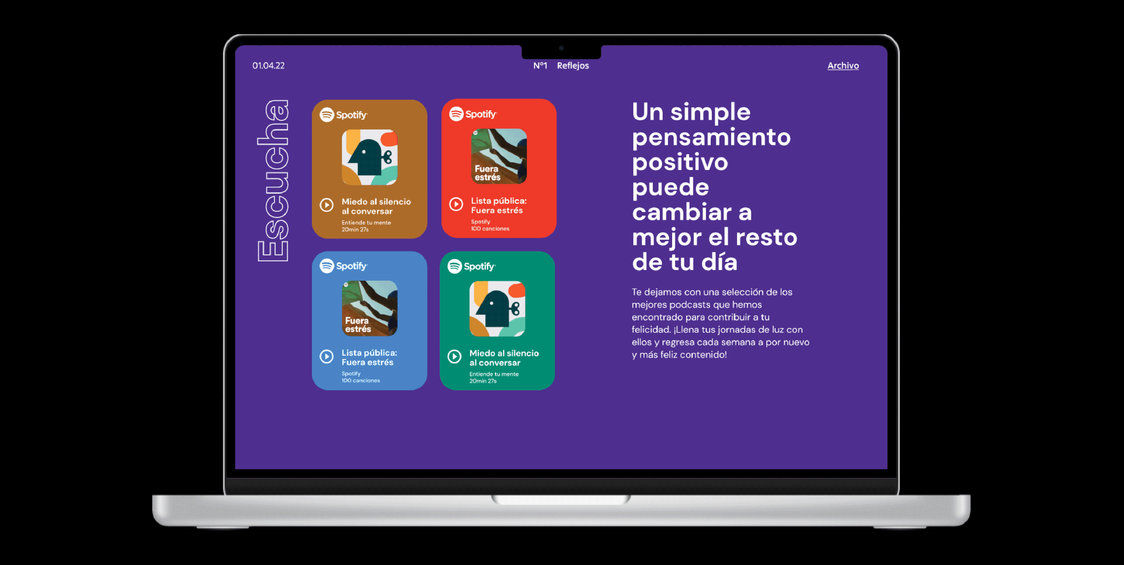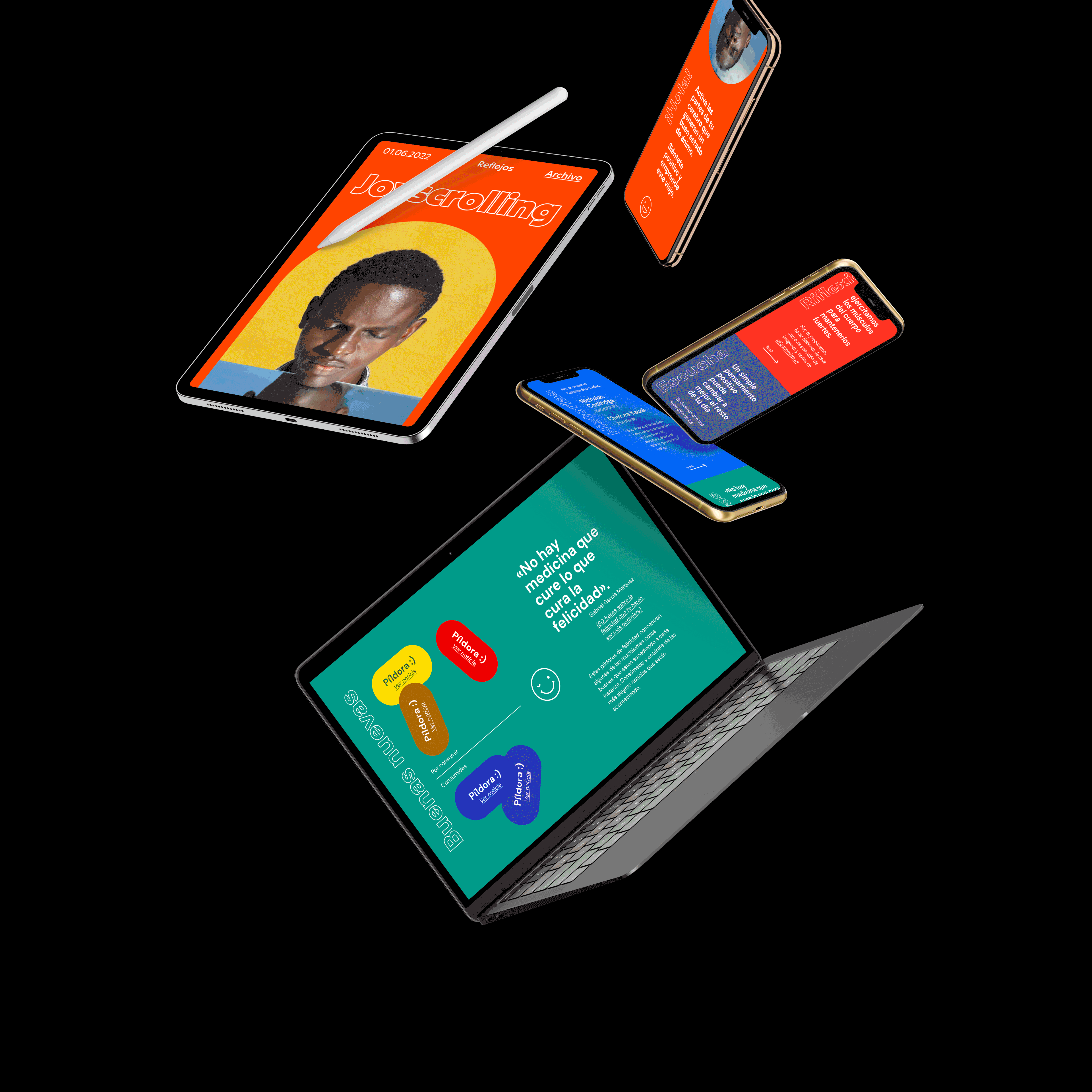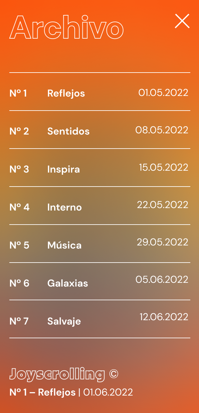 Joyscrolling está dirigida a un público trabajador o estudiantes agobiados por el estrés diario de cumplir con varias actividades en el día, un público inmerso en un mundo digital en donde solo fluyen noticias negativas con tendencia al doomscrolling. El propósito de la web es que sus usuarios en un tiempo muy corto encuentren la calma para continuar con sus rutinas diarias, es solo un momento de esparcimiento, para desconectar pensamientos negativos. // Joyscrolling is aimed at workers or students overwhelmed by the daily stress of juggling multiple activities, a target audience immersed in a digital world dominated by negative news and prone to doomscrolling. The purpose of the website is to provide users with a brief moment of calm, allowing them to continue their daily routines. It’s a short escape, offering a break from negative thoughts.